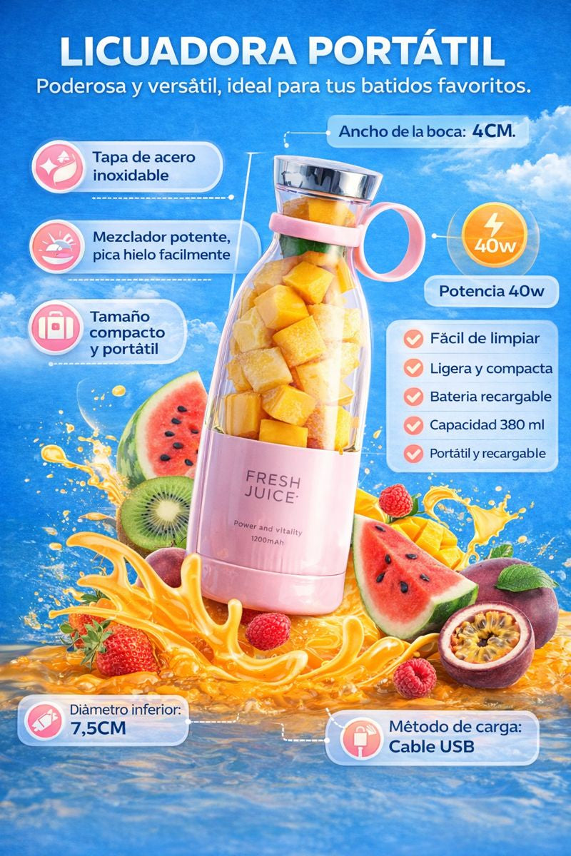 Presentamos la Licuadora Portátil Pro: La solución definitiva para quienes no sacrifican su nutrición por falta de tiempo.